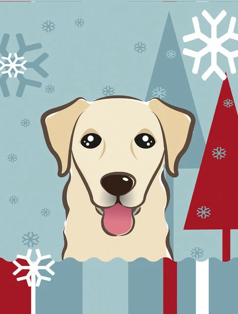 Winter Holiday Golden Retriever Flag Garden Size. This Garden Flag features artwork of a Golden Retriever. A great gift for a Golden Retriever owner. If Winter is one of your favorite seasons. Then you can certainly use this Garden Flag to add to your decorations for the Winter season. Full color double ply fabric decorative sleeve pole Garden Flag. This Garden size flag is made from a 100% polyester material. Two pieces of material have been sewn together to form a double sided flag. This allows the text and image to be seen the same from both sides and to read correctly. This flag is fade resistant and weather proof. These flags are only sold online and in specialty boutiques. The flag measures approximately 11 inches x 15 1/2 inches. The flag has a 1 1/2 inch sleeve sewn in to allow you to attach the flag to any standard garden flag stand or garden size porch hanger. (The garden stand is sold separately)