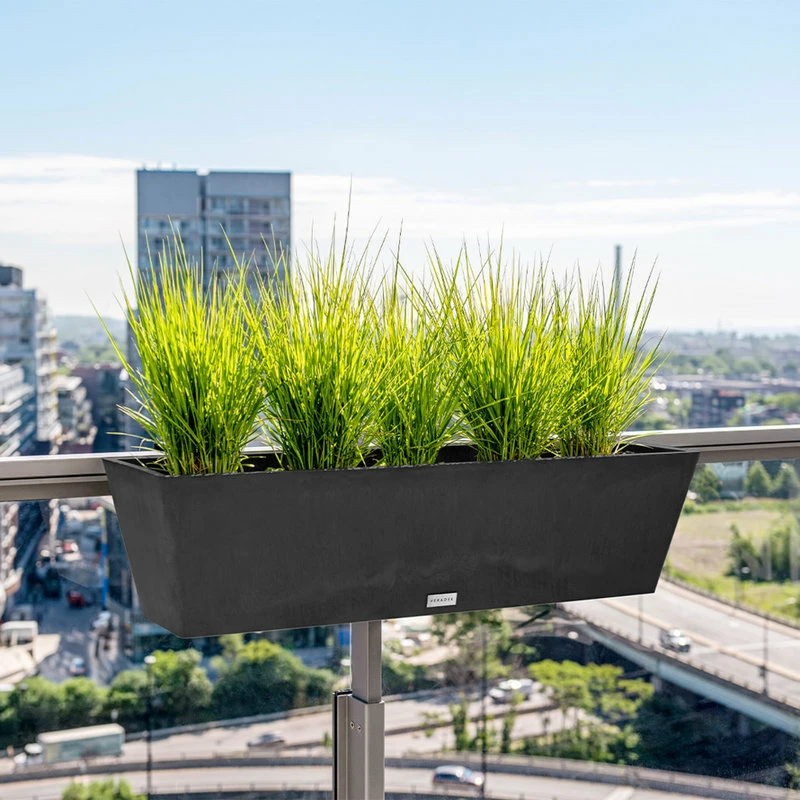Ideal for your modern patio, railing deck, outdoor staircase or balcony the Beau Day Window Box Wall Planter is a statement piece for your garden to shine in. Featuring a slate finish and a smooth, contemporary rectangular tapered design, this piece completes the modern look along any ledge adding pops of pretty colors to your window. Complete with frost, crack and rust resistant for cooler weather and a strong scratch proof resistant powder coat, the Beau Day is made to thrive in any climate. Known for its durability and function to withstand weather, it is impact resistant, treated with UV inhibitors to keep the color true from sun exposure. This contemporary window planter is a single wall molded design, made from high-grade polyethylene composite meant to keep plants happy and healthy all year round. Ideal for succulents, this round planter is the vessel waiting to complete your outdoor contemporary dream today.