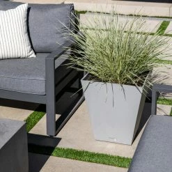 The Nobleton Square Planter Box is the subtle compliment to your contemporary indoor houseplants or outdoor landscaping. This planter is a simple geometric style, suitable for any garden or backyard. Use them separately or in multiples for a crisp but bold plant display. Featuring an organic marbled finish and a modern trough tapered design, this planter is ideal to complete a modern design for any space, indoor or outdoor. Known for its durability and design to withstand weather, the Nobleton planter is strong, impact resistant, well built yet lightweight and treated with UV inhibitors to keep the color true from sun exposure.