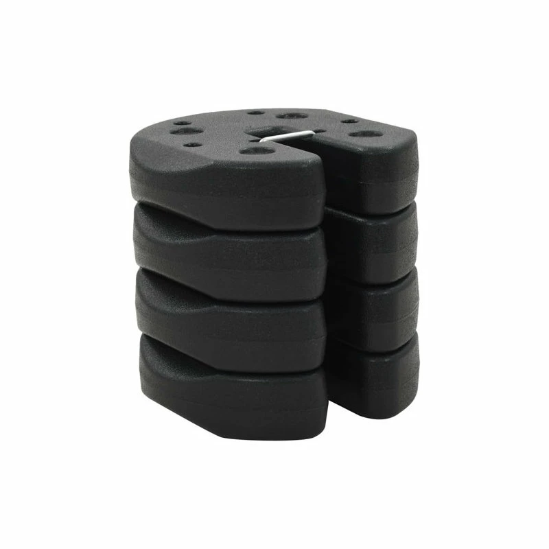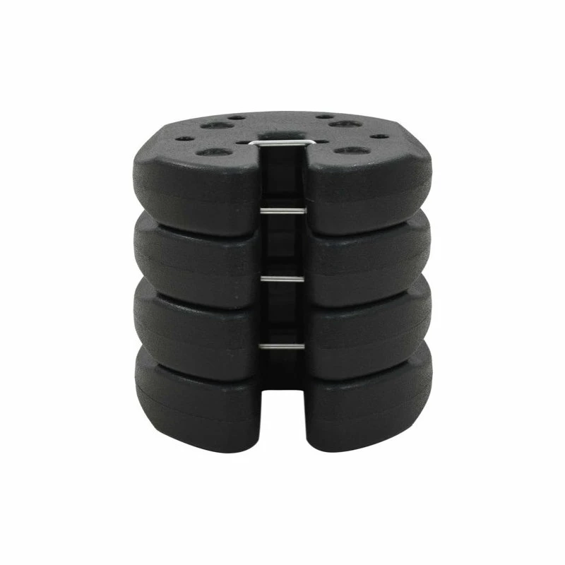 Our 4 pieces of weight plates will provide a cost-effective option for safely securing your gazebos, party tents, outdoor parasols or any other outdoor equipment. Made of concrete inside and covered with plastic, these base weights are durable and weather resistant. Each weight is suitable for the tube size up to 1.2″. This set of weights can be stacked on top of each other to prevent your tent topple or fly away in high winds. Our gazebo weight plates are easy to use and transport.