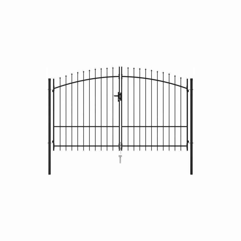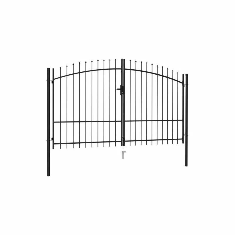 This garden gate will form a contemporarily styled, practical barrier, which will separate your garden from the outside world. Highly stable and durable, the fence gate provides a practical garden barrier for your garden, patio or terrace. With vertical bars topped with spike ends and strong horizontal brace as the reinforcement, our garden gate will provide a high degree of privacy and security, while forming a fabulous entryway to your property. Manufactured from heavy-duty steel, the gate is powder-coated to protect against rust and corrosion. It also comes with a bolt hinge for quick locking, and mounting posts for easy installation. 3 matching keys are also included in the delivery. This gate is a great combination of style, strength, stability and corrosion resistance!