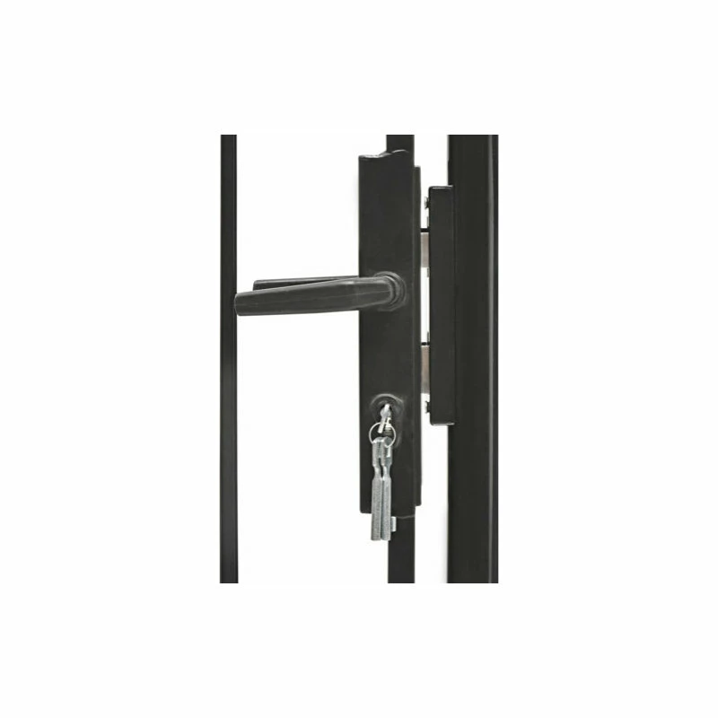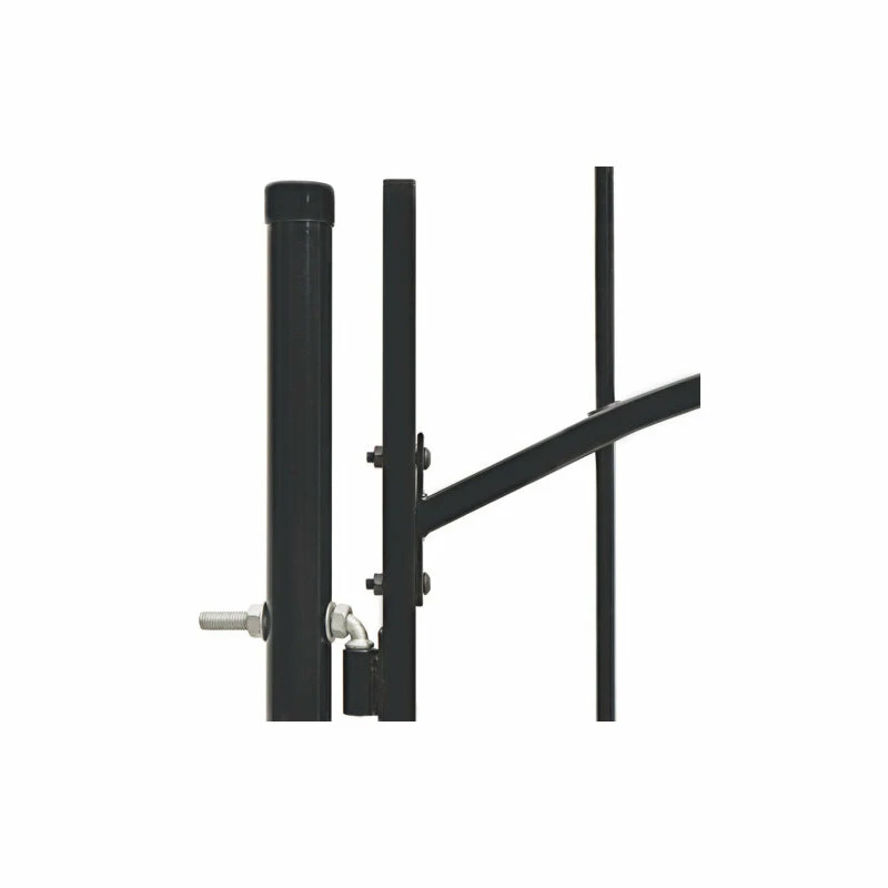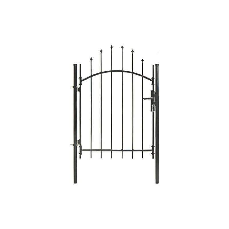 This garden gate will make a contemporarily stylish, practical entryway to seclude your garden from the outside world. Highly stable and durable, the fence gate will form a practical security barrier for your garden, patio or terrace. Thanks to its elegant, arched top design and strong horizontal braces to reinforce the frame, our garden gate will provide a high degree of security, while forming a fabulous entryway onto your property. Manufactured from heavy-duty steel, the gate is powder coated against rust and corrosion. This fence gate is equipped with a locking system and comes with two solid posts along with sturdy hinges for easy installation. This garden gate is an excellent combination of style, strength, stability!