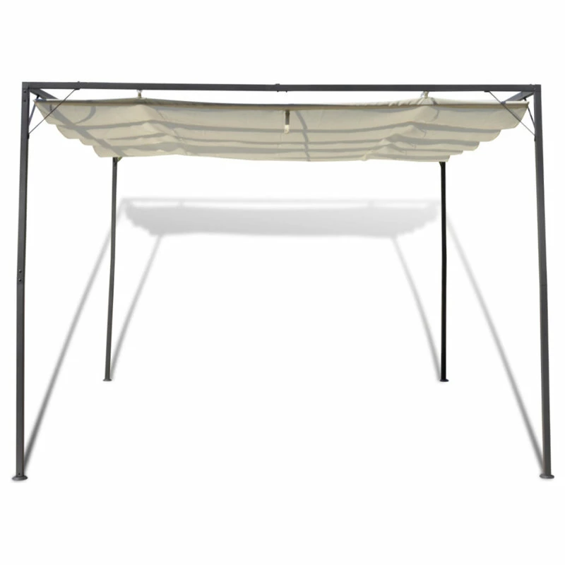 With this gazebo you and your family can enjoy any social gathering and remain sheltered from the elements. This gazebo is suitable for multiple types of weather; its retractable roof protects you from harmful UV rays and also from the rain. This gazebo is manufactured with a powder-coated metal frame and a 100% Polyester water-resistant cover. NOTE: This product should NEVER be used under bad weather, such as strong wind, heavy rain, snow, storm, etc.