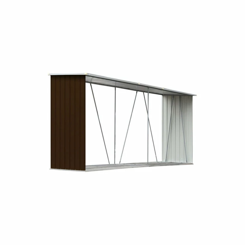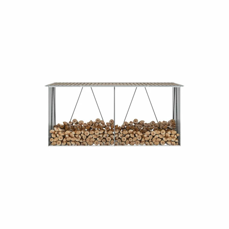 This log storage shed presents a great storage solution for firewood. It has a stable construction with steel support bars and extra tubes on both sides. As it is made of galvanized steel, the firewood storage shed requires minimal maintenance and is very durable. This log store includes a steel floor frame for added stability and raised floor slats to keep the logs ventilated and dry. Rainwater will automatically be drained from the roof thanks to its sloping design. Our firewood shed is easy to assemble. Keep your fire logs organized, stacked and aired with this solid and compact log storage shed!