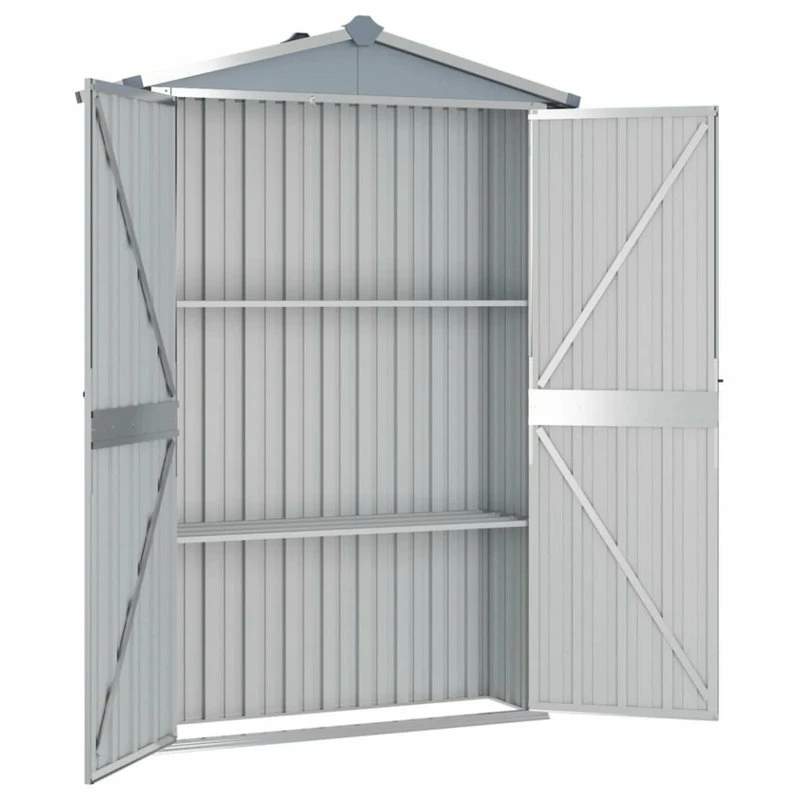 This garden shed is ideal for storing a wide variety of items like tools, garden furniture, garden equipment, etc. The shed offers protection from dirt, dust, strong wind and harsh weather. This storage house is equipped with vents, providing ventilation to reduce the accumulation of moisture and odor in the house. With shelves, it offers ample storage space to keep your essential items organized. Additionally, made of galvanized steel, this outdoor storage shed requires minimal maintenance and is very durable. The double opening doors in the front allow easy entry and exit. Rainwater automatically drains from the roof with its sloping design.