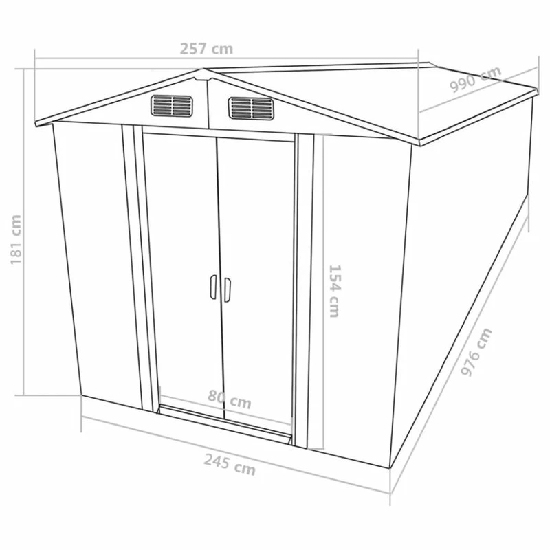 This galvanized steel garden shed will be perfect for storing a wide variety of tools, garden furniture and garden equipment. The garden shed does not only offer protection from dirt and dust but also against wind and weather. This storage house features vents, ensuring excellent ventilation. Its double sliding doors in the front allow easy entry and exit. Thanks to the galvanized steel construction, the tool storage shed is durable and strong, and won’t corrode or be affected by adverse weather conditions.