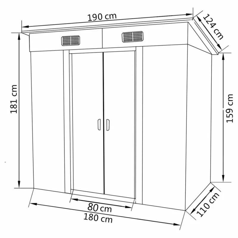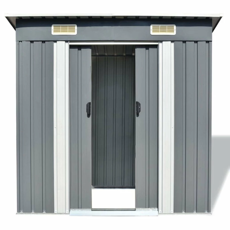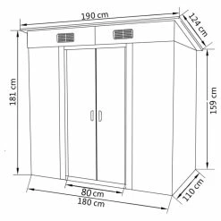 This metal storage shed will be perfect for storing a wide variety of tools and equipment. This storage shed has 2 vents in the front, ensuring excellent ventilation. The double sliding doors in the front allow easy entry and exit. The galvanized steel construction, along with a zinc-coated finish, makes it durable and strong, so it won’t corrode or be affected by extreme weather. The pre-cut, pre-drilled parts and the included instruction manual ensure fast and easy assembly.