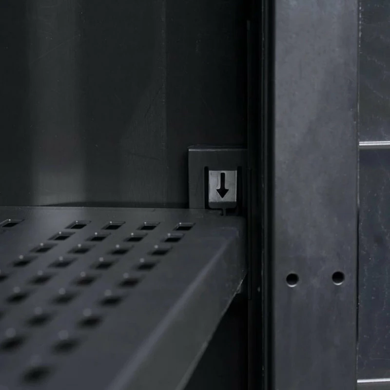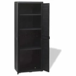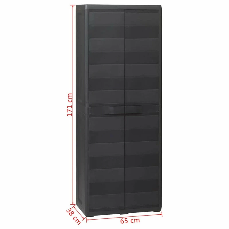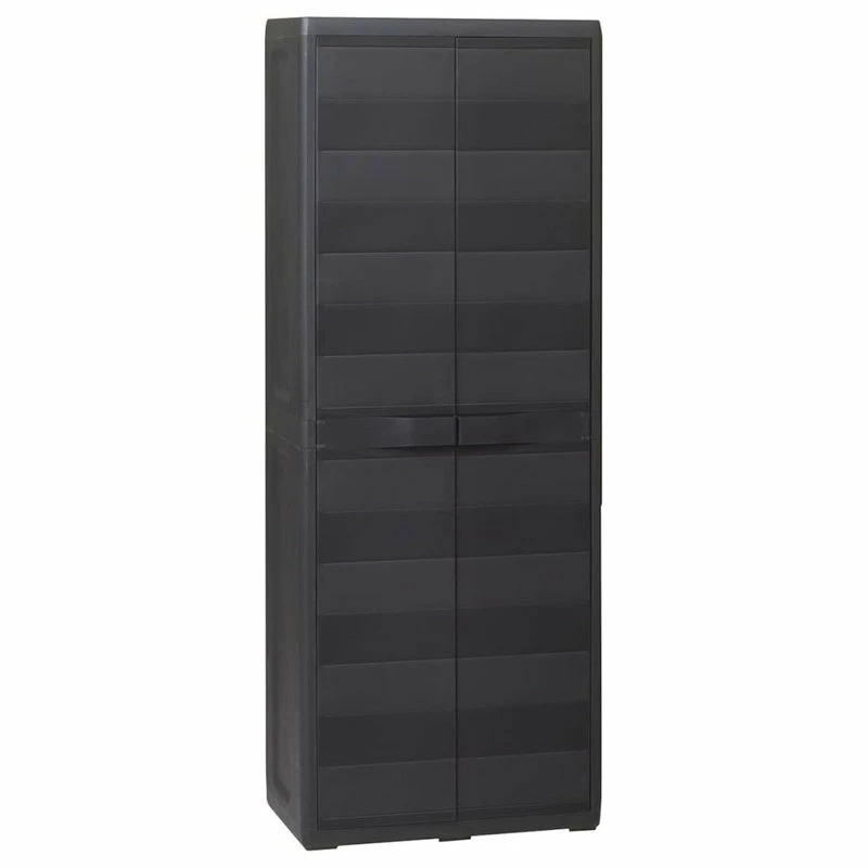 Our high-quality storage cabinet is ideal for organizing and storing your household supplies, tools or other items in the garden or on the patio, etc. This cabinet will blend into any decor with its timeless design. This TÜV-GS certified cabinet is made of sturdy, durable polypropylene (PP). The spacious storage cabinet has ventilated shelves which can be adjusted to accommodate items of different sizes. The garden cabinet can be locked with a padlock for added safety (the lock is not included). This outdoor storage cabinet is very easy to clean. The garden cabinet has a compact design and will make the most use of limited space. Assembly is easy.