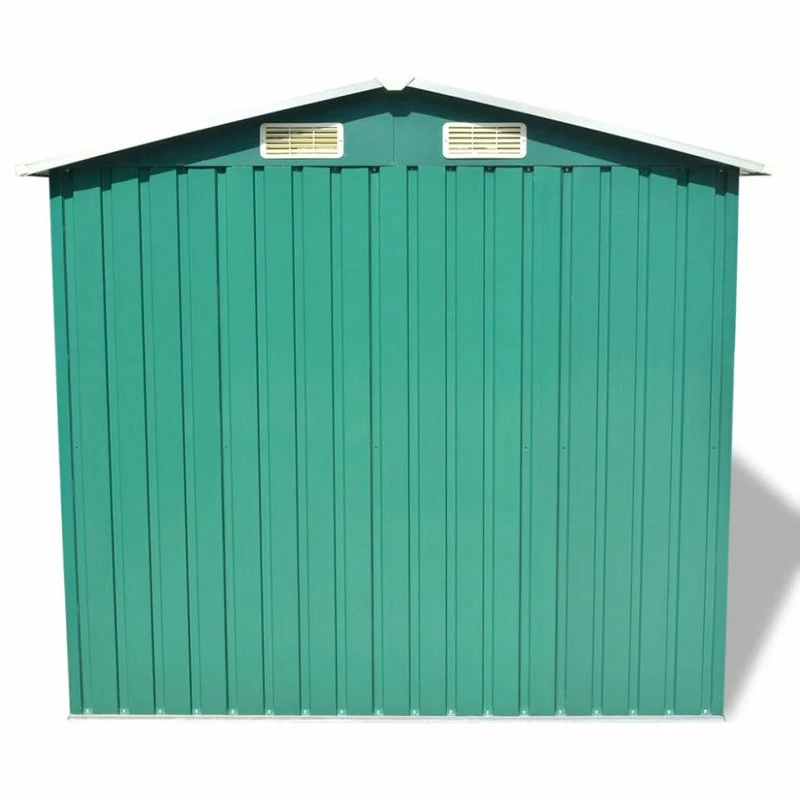 This metal storage shed will be perfect for storing a wide variety of tools and equipment. This storage shed has 4 vents, 2 in the front and 2 in the rear, ensuring excellent ventilation. The double sliding doors in the front allow easy entry and exit. The galvanized steel construction, along with a zinc-coated finish, makes it durable and strong, so it won’t corrode or be affected by extreme weather. It also includes a steel floor frame which adds stability and is perfect for a wood floor finish (wood not included). The pre-cut, pre-drilled parts and the included instruction manual ensure fast and easy assembly.