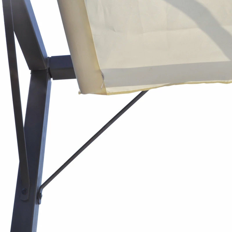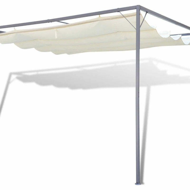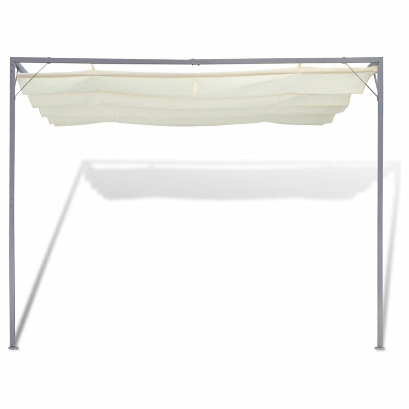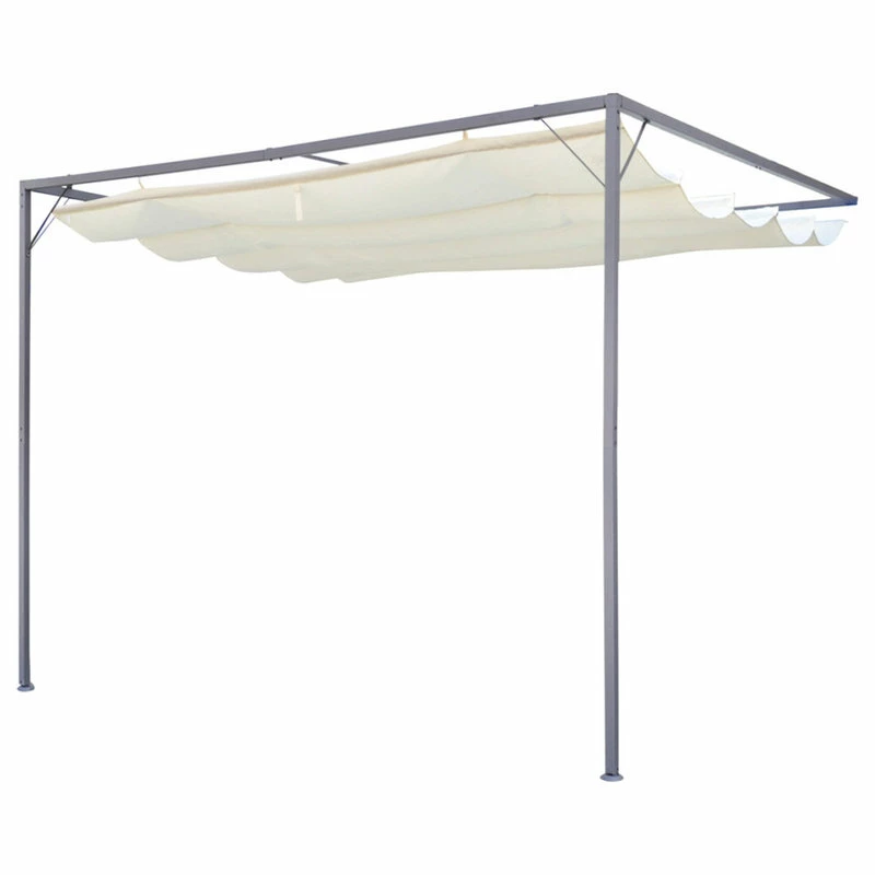 With this gazebo you and your family can enjoy any social gathering and remain sheltered from the elements. This gazebo is suitable for all types of weather; its retractable roof protects you from harmful UV rays and also from the rain to keep you dry. This gazebo is manufactured with a powder-coated steel frame and a 100% polyester weather-resistant cover. Intended to be fastened to a wall. Note: Please use a water-resistant spray to ensure the gazebo remains weather-resistant. NOTE: This product should NEVER be used under bad weather, such as strong wind, heavy rain, snow, storm, etc.