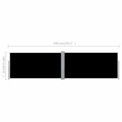 Our garden side awning, featuring a large screen, presents an effective way to deal with a constant wind and low-lying sun, while providing privacy. The simple yet stylish design makes it an ideal complement for your garden, patio, balcony, etc. The privacy screen has an automatic roll-back function and the width is adjustable to up to 236.2″. The outdoor screen is made of UV-proof, tear-resistant and water-resistant polyester fabric with a PU coating. Delivery also includes mounting accessories and 2 posts.