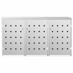 Designed for utility, our practical wheelie bin shed enables you to have the perfect cladding for triple 240-litre or smaller garbage bin. It keeps waste bin in your garden out of your sight and create a beautiful and clean environment. Made from stainless steel, the garbage bin box is exceedingly weather resistant and durable. These useful ventilation holes allow air circulation and prevent smelly odors in the garbage box while the locking system ensures safe storage of garbage.Additionally, the handy door allows you to put into and take out waste bin easily. The trash bin shed is easy to clean.