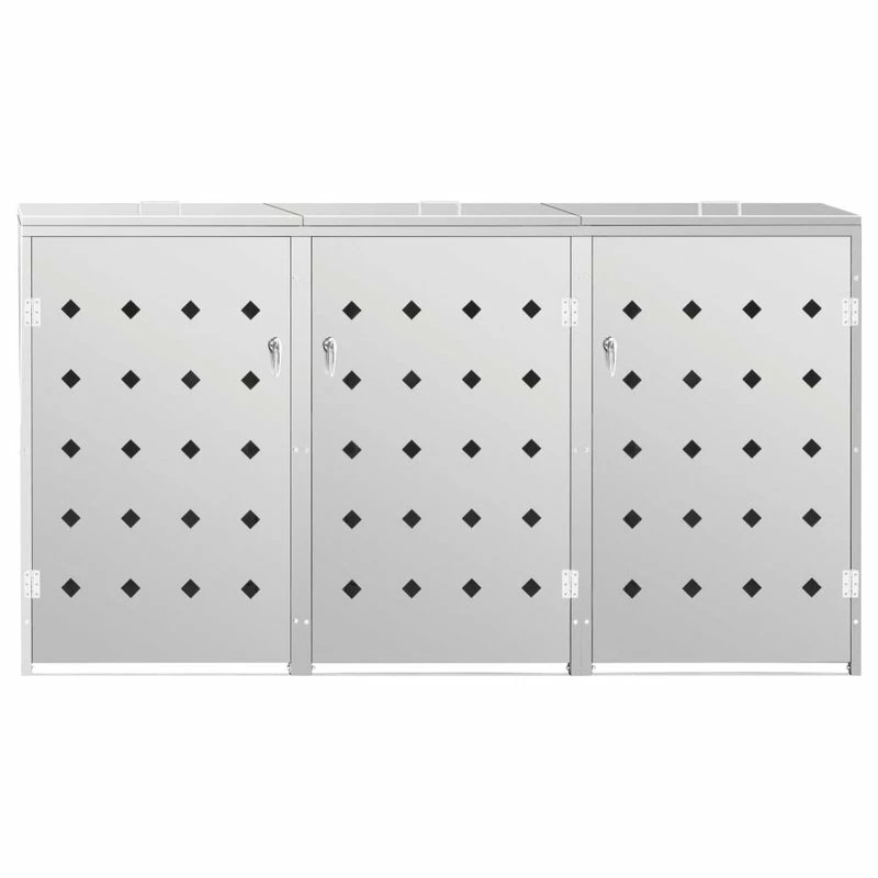 - Accommodates 3 garbage bins of up to 63.4 gal or smaller