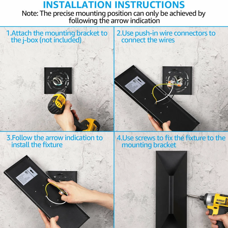 You can quickly install this wall light in 3 steps thanks to the included accessories. Suitable for standard 4inch junction boxes (not included), the backplate’s metal sheet helps to accurately mount the light.