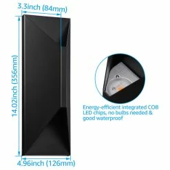 Made with integrated COB LED chips, this energy-efficient wall sconce eliminates bulb-replacement. 10%-100% dimmable, this light fulfills different lighting needs when used with compatible conditions. The size of this porch light is 14×5×3.3inch.