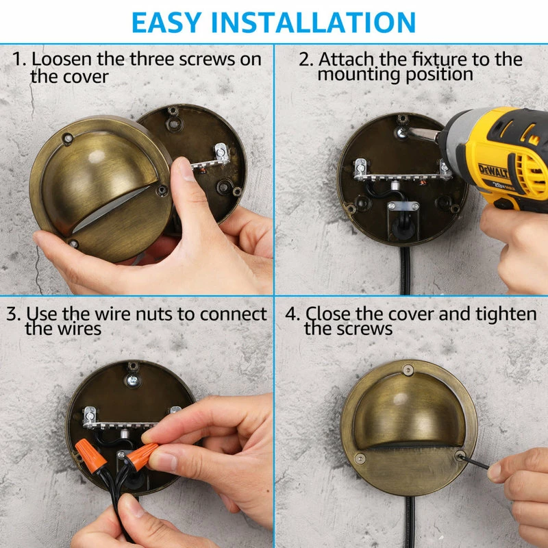 Simple to Install: The included mounting hardware and accessories make the light very convenient and easy to install. The deck light can be surface mounted to light up your walkways, front steps, back decks, porches and patios in the darkness