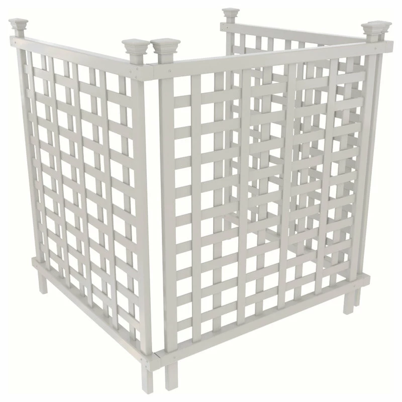 This lattice screen kit is designed to cover outdoor air conditioning units in your backyard or garden. Slat spacing is designed to provide ample airflow to the AC unit during operation. Made with maintenance-free and weather resistant vinyl, it’s free-standing design allows for simple installation. Please allow 45 minutes for assembly of the full unit. The only tool you will need is a cordless drill. If you are interested in rooftop options, Zippity Outdoor Products makes 2 rooftop accessories, the Tabletop Kit and the Winter Cover Kit, available for purchase separately under item codes ZP19053 and ZP19054.