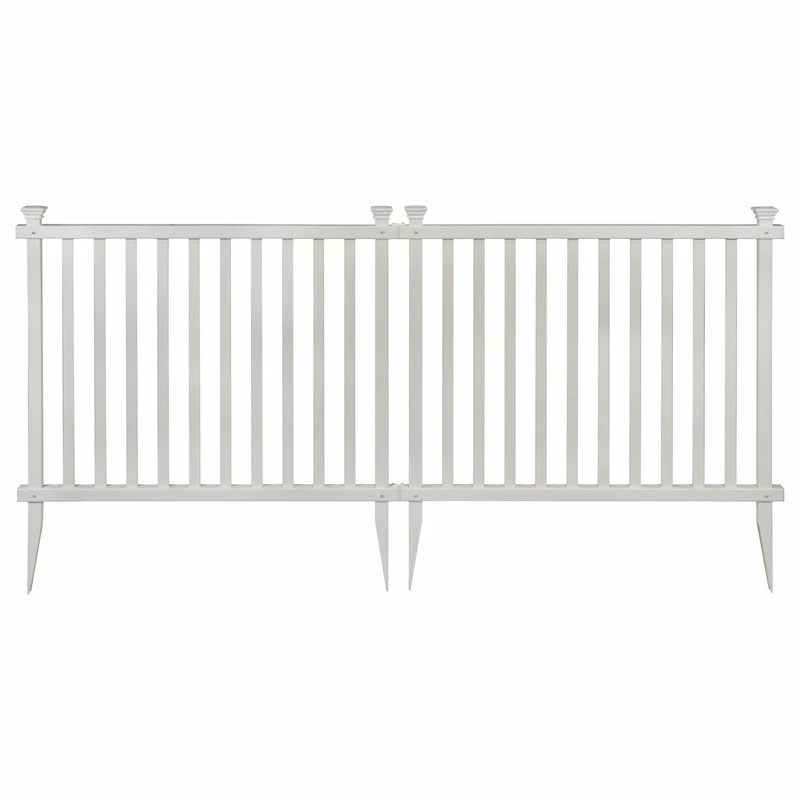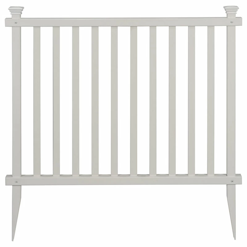 The Baskenridge Outdoor Vinyl Garden Fence is designed to create instant landscaping in your yard. Forget digging holes or pouring concrete; simply insert the pointed stakes directly into your ground for a relatively easy install almost anyone can do! Made with weather resistant vinyl materials, this fence will not rust, rot or deteriorate from the elements. Each box includes 2 panels for a total of 84in of fence.