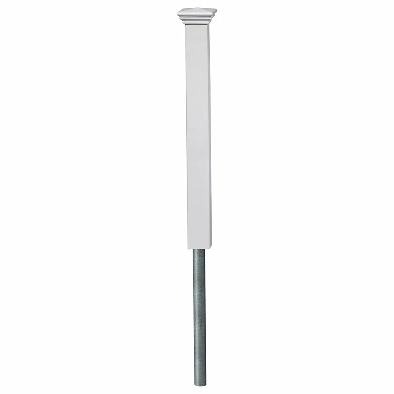 This vinyl no-dig post kit will complete your All American Vinyl Picket Fence project. Forget digging holes or pouring concrete with this innovative fence post kit. Each kit comes with a steel pipe for ease of installation. Simply drive the pipe into the ground. Each post is 3.5in x 2in and comes with a decorative molded cap to add aesthetic appeal.