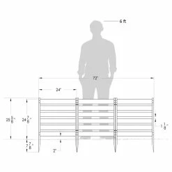 - DIMENSIONS: Each panel measures 25 ½” H x 24” W, once fully installed your fence will span 6 ft