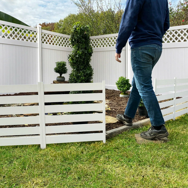 The No-Dig White Vinyl Maui Garden Fence Kit is great for keeping rabbits, rodents, and other unwanted pests out of your garden! Create decorative borders and enhance your landscaping with this classic white vinyl look. These slatted panels have a beautiful ranch style aesthetic and will make any space truly stand out. You will receive materials for 3 Maui Garden Fence panels and assembly should take you approximately 30 minutes. No need to worry about digging up your yard or garden, these panels install by using a mallet to drive the fence posts into the ground. Each panel measures 25 ½ inches high by 24 inches wide and, once installed, the 3 panels span 6 linear feet. These panels easily attach to each other by using the included joiner clips which also allow for installation in a straight line or corner application. Our white vinyl is UV and water-resistant meaning this fence will last for years to come. There’s no staining, painting, or maintaining required! For a more natural look, we offer the exact same fence in a chic, charcoal WoodTek Vinyl finish (item code ZP19066).