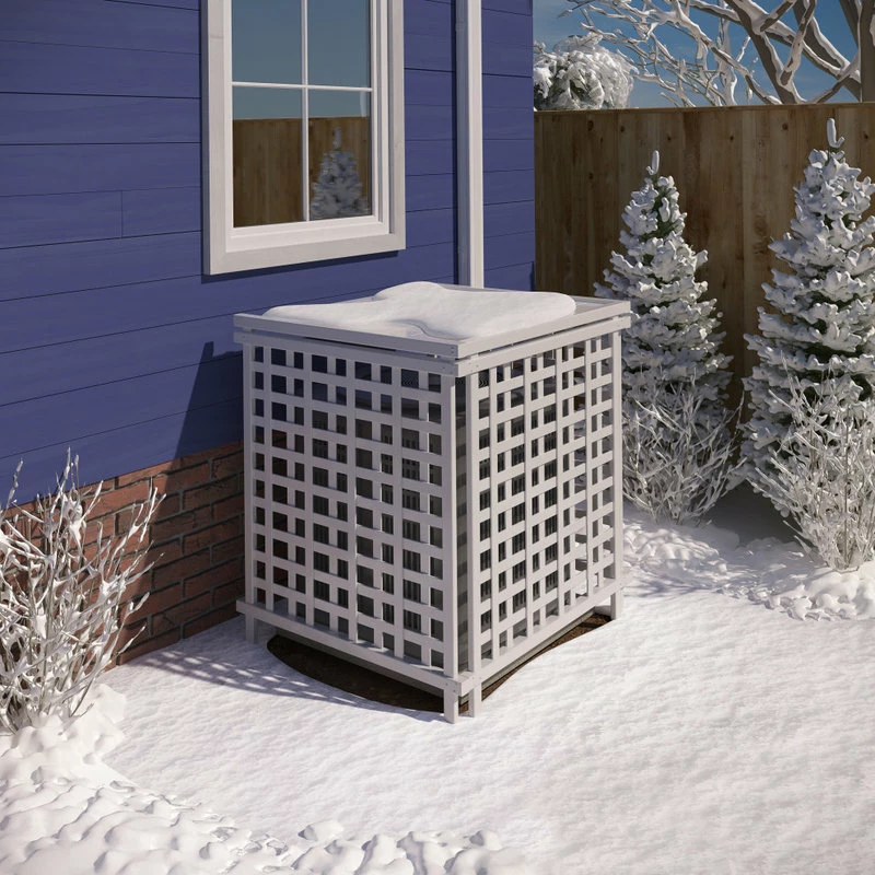 This top is designed as an accessory for the Liberty Lattice AC Screen Kit (ZP19052). Does not include the Liberty Lattice AC Screen Kit (ZP19052). Use this winter cover kit to add style and functionality to your Liberty Lattice AC Screen Kit while also providing your AC unit with extra protection. Each box contains one solid, white tabletop unit crafted from durable and lightweight vinyl. The solid top protects your condenser from the winter elements and is only to be used when the condenser is not running. Our weather-proof vinyl requires little to no maintenance and is backed by a 10 year warranty. A cordless drill is the only tool that you will need to assemble the tabletop kit in approximately fifteen minutes.