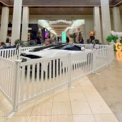 Need to define a subtle, elegant looking barrier for temporary events? The Davidson Hinged Portable Vinyl Fence Kit is designed to stand alone on a flat surface and can be easily moved as necessary. Our innovative hinged design allows for multiple configurations of this fence kit to provide whatever barrier you may need. The Davidson Hinged Portable Fence Kit is designed to be a psychological barrier and should not be used to keep children or pets safe. The fence post sits on a portable foot, making it easy to move based on your changing needs. Each panel includes a connector bracket to attach it to adjacent panels. Each kit comes with materials for one panel. A Zippity Hinged Portable Fence Finishing Post (search item code ZP19063) must be purchased to complete your fence run.