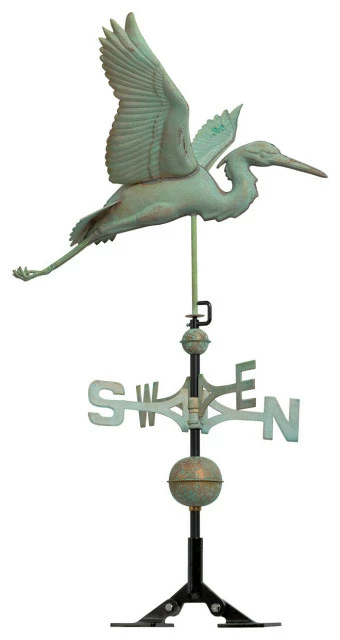 Whitehall Products 26″L X 28″W X 44 1/2″H Copper Heron Classic Directions Weathervane, Verdigris