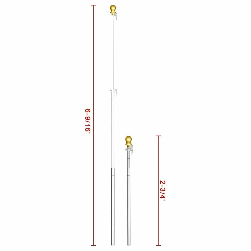 – Durable & Heavy-Duty – This 6.5ft Aluminum Telescopic Flagpole Kit comes with a golden top finial and heavy duty 16 gauge aluminum tube offering exceptional durability and rustproofing