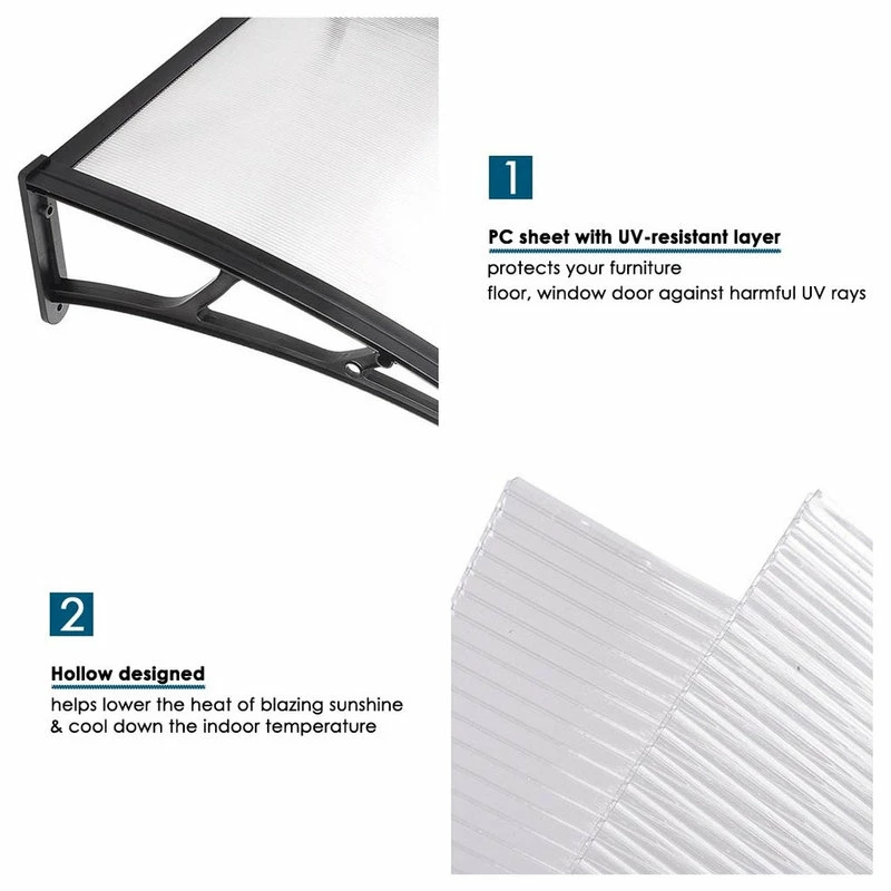 - Versatile Transparent Shelter – 40″x40″ awning features transparent color for providing sufficient light and clear sight when reading or doing outdoor activities, and effectively protects your door, window, furniture and floor from UV rays, rain & light snow; Ideal to use in patio, forecourt, garden or balcony