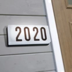 Address Lights by Yosemite Home Decor illuminate your home’s address. The fixture is designed to mount onto the outside of your home and comes with three sets of plastic numbers from 0 to 9. This is a 14-Volt Low-Voltage piece.