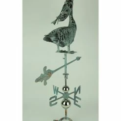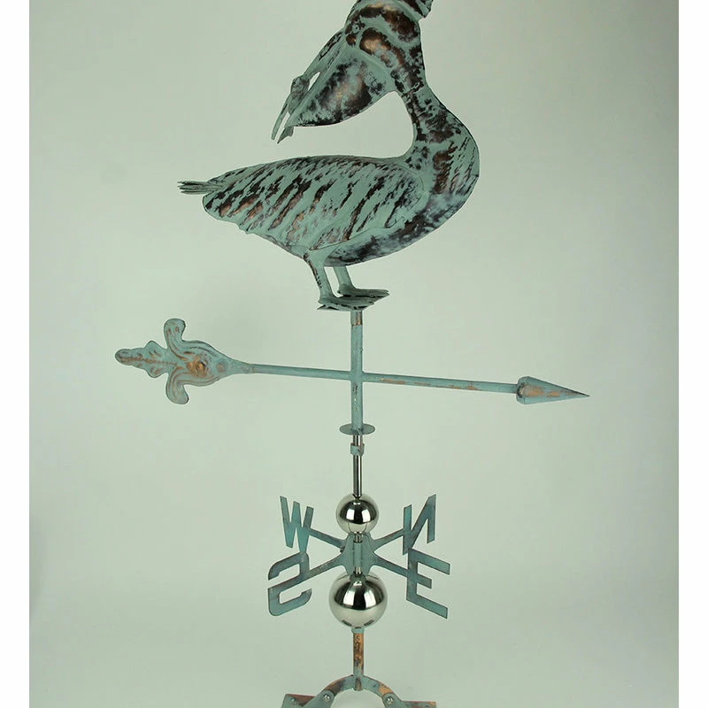 More than just an architectural ornament, this pelican bird vane is an eye-catching instrument for showing the direction of the wind and provides a finished look for your home, barn, cupola, shed, or garden gazebo. The metal construction is sturdy and durable, and the hand-applied weathered verdigris patina gives it the look of oxidized copper. A built-in adjustable bracket for rooftop mounting is included. This 39.37-inch high, 27.56-inch long, 4.33-inch wide pelican wind vane is an impressive decoration that works well in any environment.