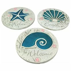 Zeckos 3 Piece Blue Seashell Beach Design Cement Wall Hanging Set