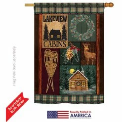 Breeze Decor Winter Lakeview Cabins Winter, Seasonal House Flag 28″x40″